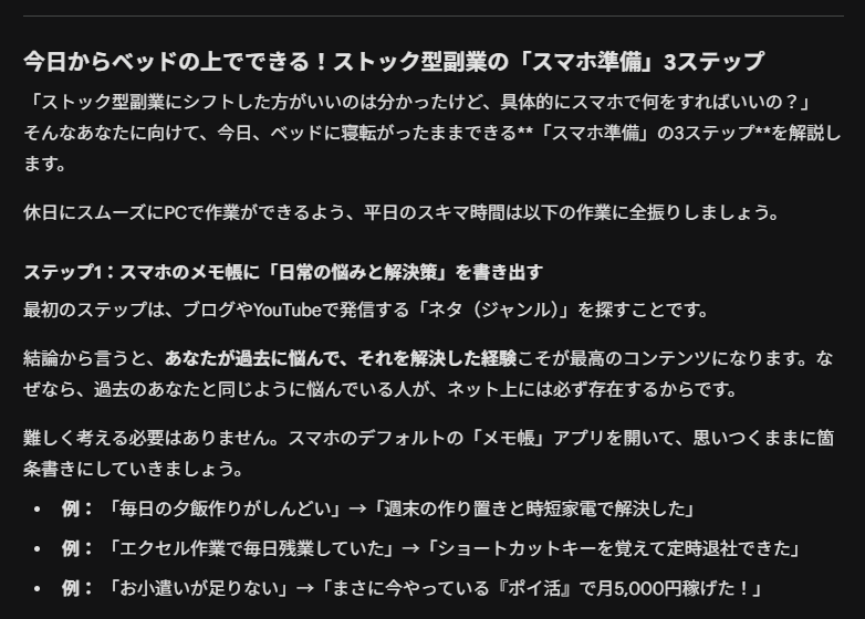 その先は「スマホのスキマ時間」と「AI」をフル活用して、ブログという『ストック型資産』の準備にシフトしていく。