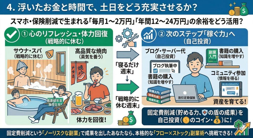 4. 浮いたお金と時間で、土日をどう充実させるか?
