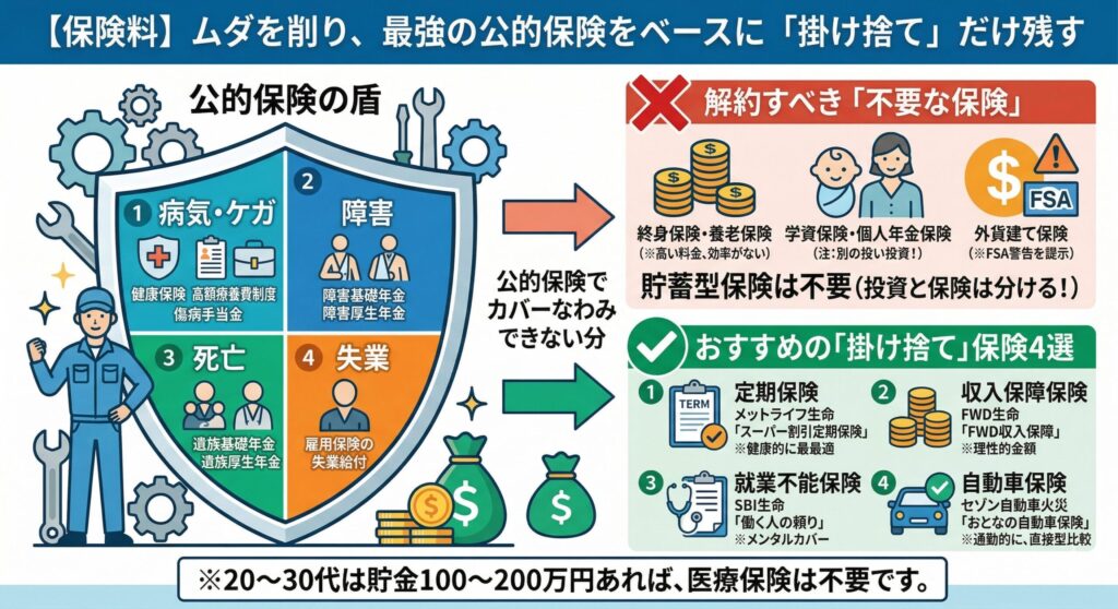 3. 【保険料】ムダな保険は解約!本当に必要な「掛け捨て」だけ残す