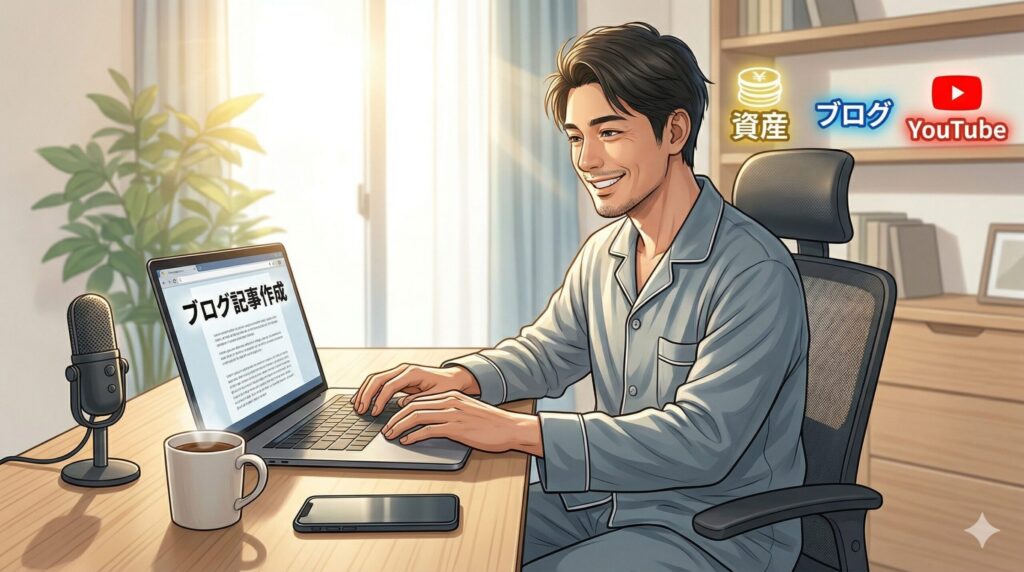 • ストック型副業が最適: 肉体的な疲労ゼロで取り組める「ブログアフィリエイト」や「YouTube」なら、あなたの代わりにコンテンツが24時間働き続けてくれる。