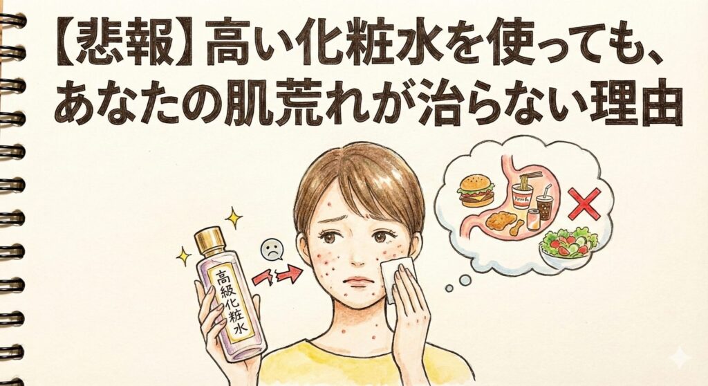 まず、残酷な現実をお伝えします。 今使っている高い洗顔料や化粧水、もし食生活がボロボロなら、それは「ドブにお金を捨てている」のと同じです。