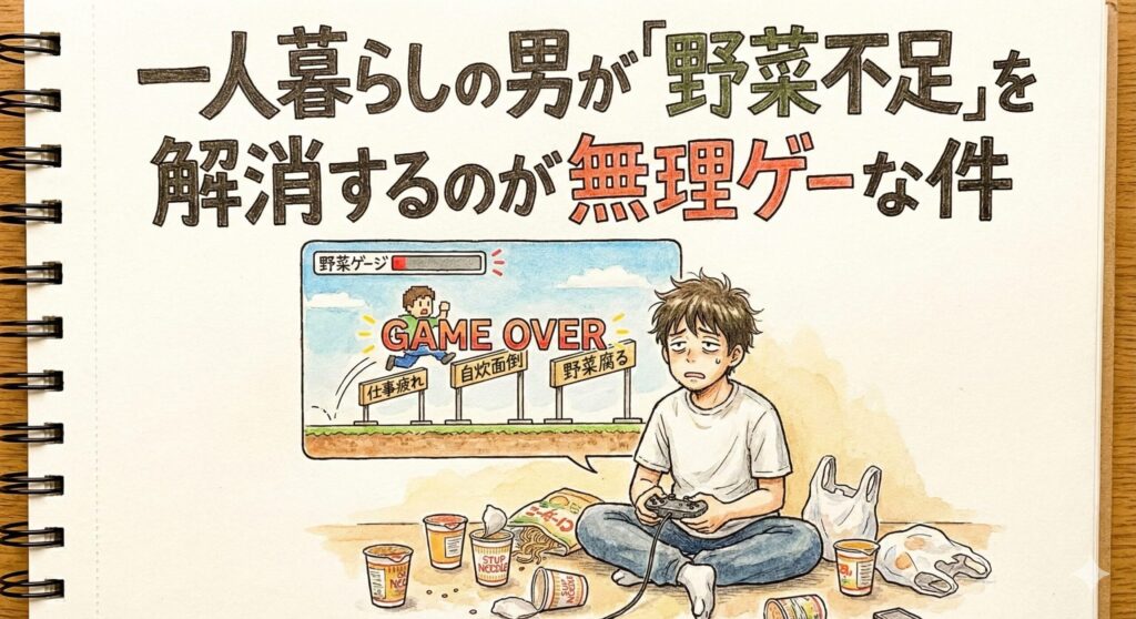 一人暮らしの自炊で野菜を摂り続けるのは、ハードルが高すぎるのです。