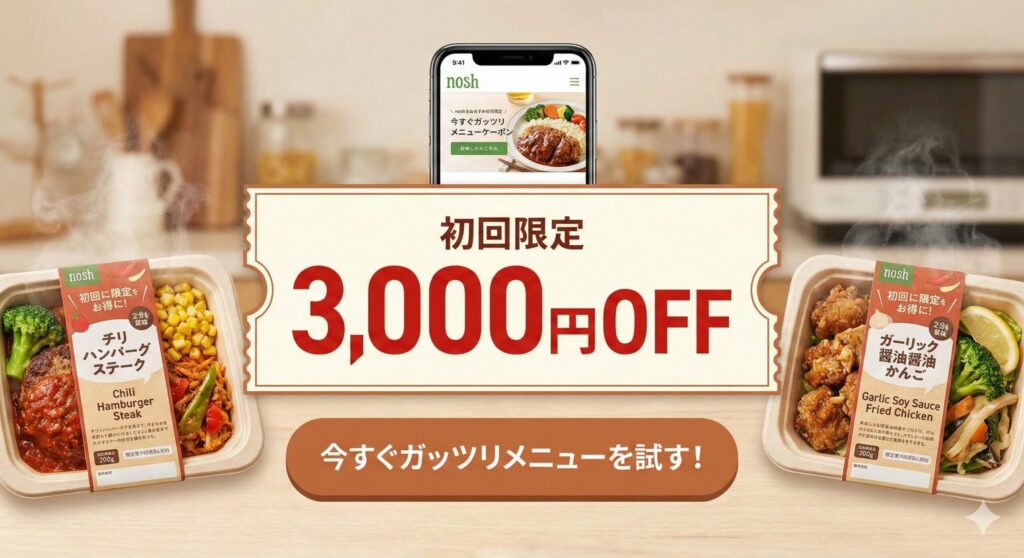 ▼ 初回3,000円OFF!noshのガッツリメニューを見てみる → [公式サイトへのアフィリエイトリンク]