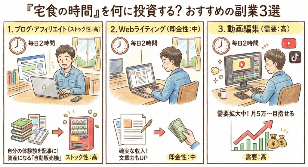 「宅食の時間」を何に投資する?おすすめの副業3選